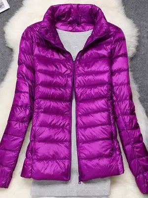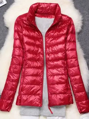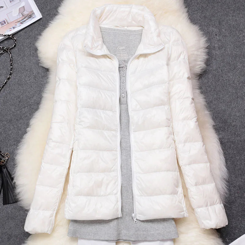 Deze ultralichte en winddichte winterjas is ideaal voor de koudere maanden. Met een stijlvolle capuchon en een slanke pasvorm biedt deze jas zowel warmte als comfort zonder in te leveren op modieus design. Perfect voor zowel dagelijks gebruik als buitenactiviteiten in de herfst en winter.