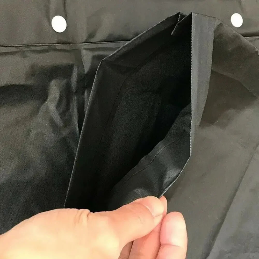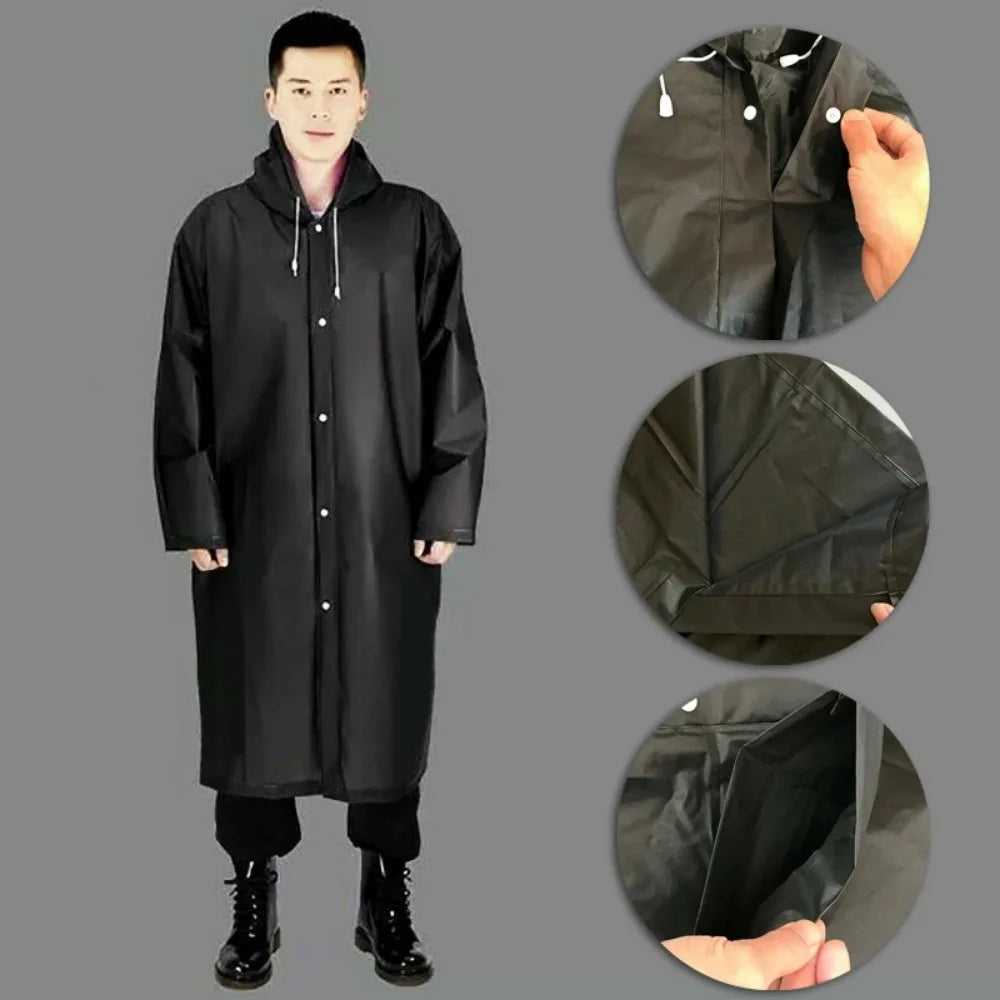 Het zwarte ontwerp past bij elke outfit, en dankzij het uniseks model is deze regenjas geschikt voor zowel mannen als vrouwen. Ideaal voor elke seizoen en voorzien van een stevige capuchon, zodat je altijd klaar bent voor nat weer.